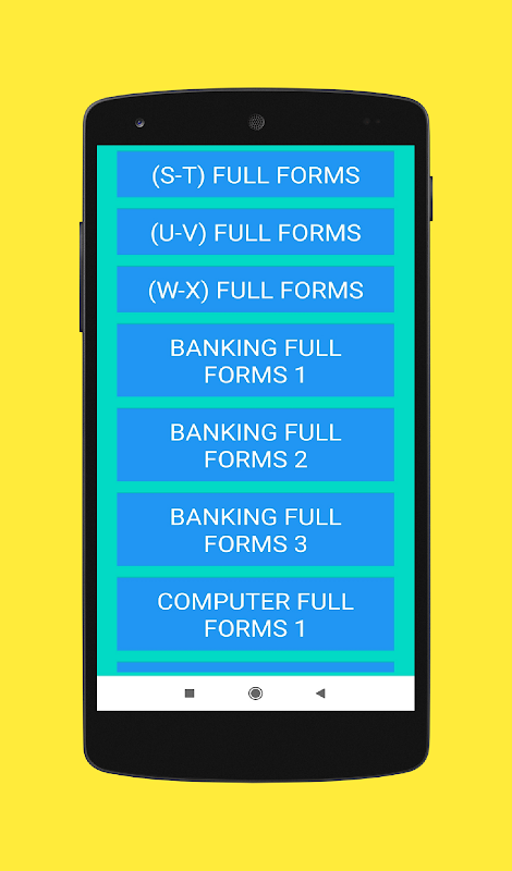 This app contains full forms of a to z alphabets with Banking and Computers full form for all competitive exam and daily use in life .
