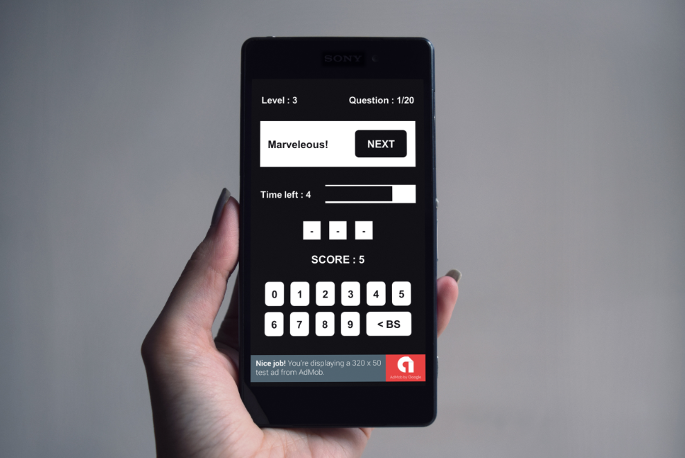 This math game is designed for you who love mathematics, especially for the ones who want to challenge themselves in calculation or those who want to increase their calculating speed. This game is for all ages, not only for kids. However, it's also good for kids to train their speed in calculation by playing enjoyable math games. The questions in this game consist of addition, subtraction, multiplication and division operations. You must think fast (don't use a calculator!) to solve each question!