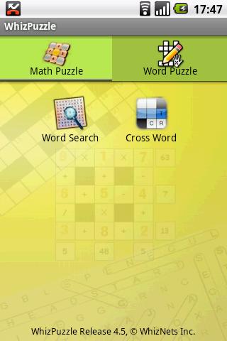 Word Search displays a matrix of characters, where you have to find the hidden words given at bottom of the matrix. Select the word by touching the starting character and drag your finger to complete the word. If the word selected is correct, it will highlight that word. There is also a crossword game. The clues are on the bottom of the screen.