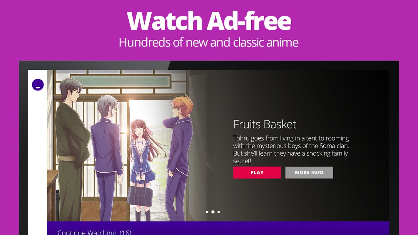 Alirkan beratus-ratus anime baru dan klasik tanpa gangguan komersil itu.