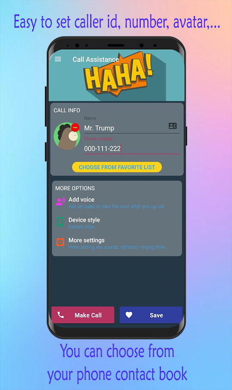 Kami menetapkan nama aplikasinya ke "Bantuan Panggilan" untuk mengelakkan rakan anda menyedari bahawa itu adalah gurauan panggilan yang meniru lucu.