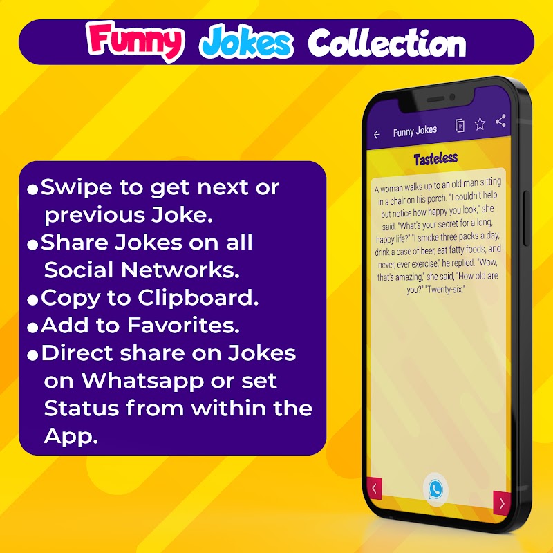 ☆ Swipe next or previous to access best funny jokes without going back to categories