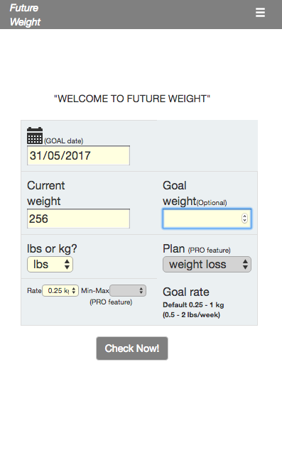 Weight loss Rate Future Checker - Calculating your ideal weight loss rate - Weight loss Planning
