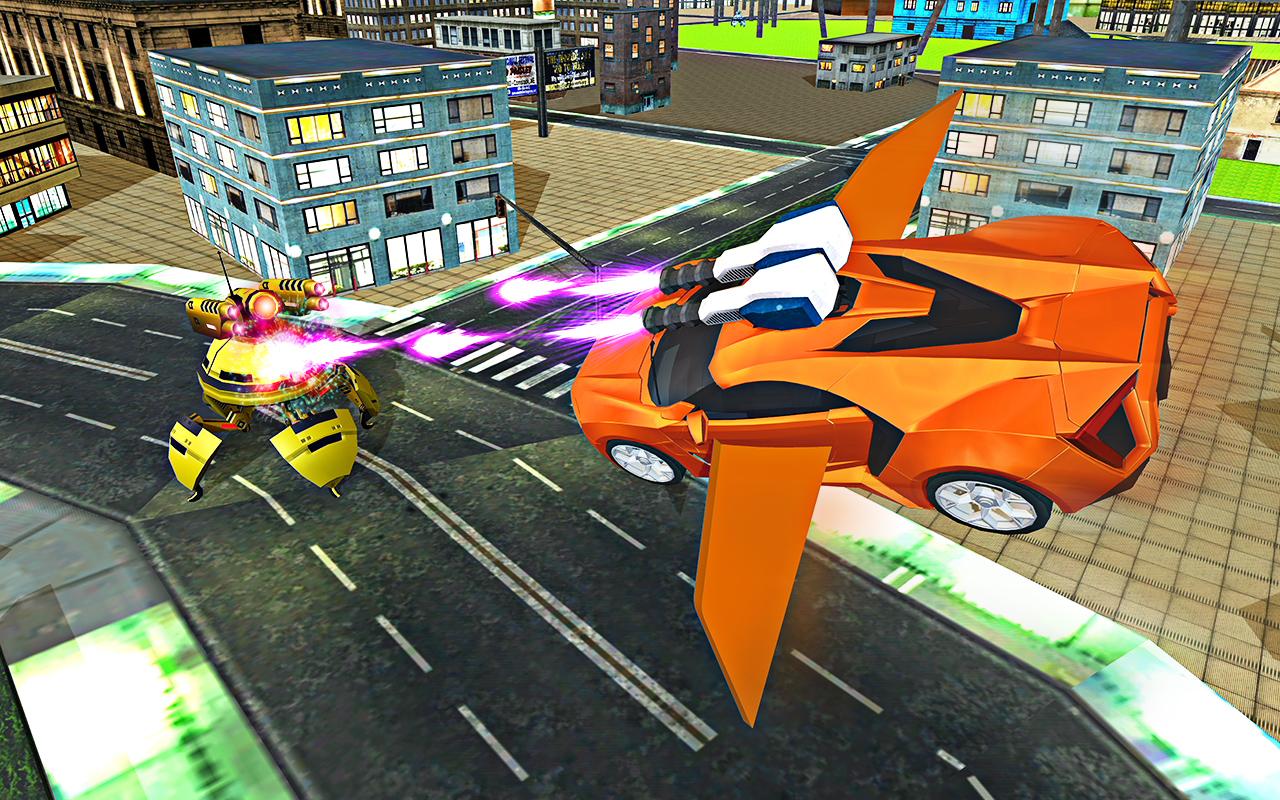 Take a short respite here and avail the great opportunity of the player of the flying car robot where you will enjoy the latest tangs of sensational and thrilling actions of the flying car robot simulator. It takes you into the depths of that action of the flying car driving simulator where you will absorb yourself to full extent in this flying car air racing and to be out from this scenario before completing all the stages will be out of question in this city flying adventure. There is much and more for you to adore in this flying car battle where the action of the futuristic flying car attracts your attention from the cores of your heart during the course of this robot fighting vs flying car. It is the blend of very innovative episode of flying car helicopter and pragmatic and eventful thrills of shooting flying car and at many levels; it even surpasses the flying car jet in the performance and dealing with its assigned tasks of this state to the art flying car war. Your flying car superhero is with the all prosperities and propensities that are the pre-requisite to fight and win this robot fight. Be the part of this heart touching robot war of multidimensional and developed robot fighting games where it is a strong case that you will surely forget the simple and static action of the orthodox robot shooting games.