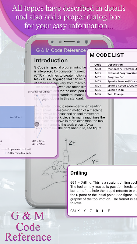 Rujukan Alat Mesin CNC juga Disertakan untuk pemahaman asas anda tentang Mesin Larik CNC dan alat pengilangan. Alat Mesin CNC ialah aplikasi percuma untuk teknologi CNC.