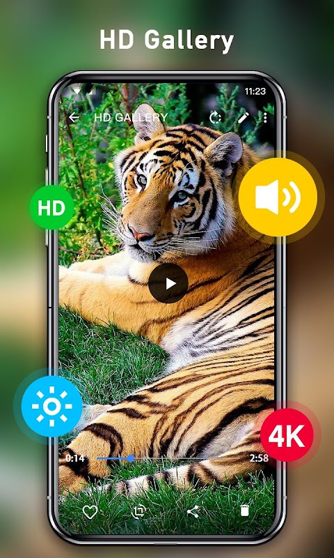 Aplikasi galeri dengan pemain video HD disokong semua format video dan dikendalikan kecerahan, jumlahnya mudah!