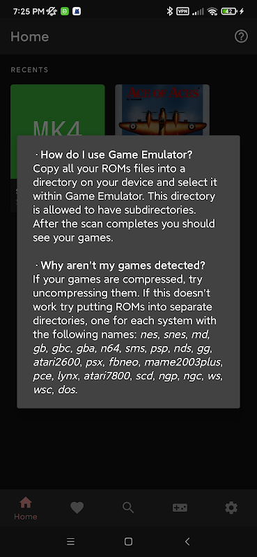 Tanpa fail permainan anda sendiri, aplikasi ini tidak akan berjalan. Anda perlu memasang rom terlebih dahulu.