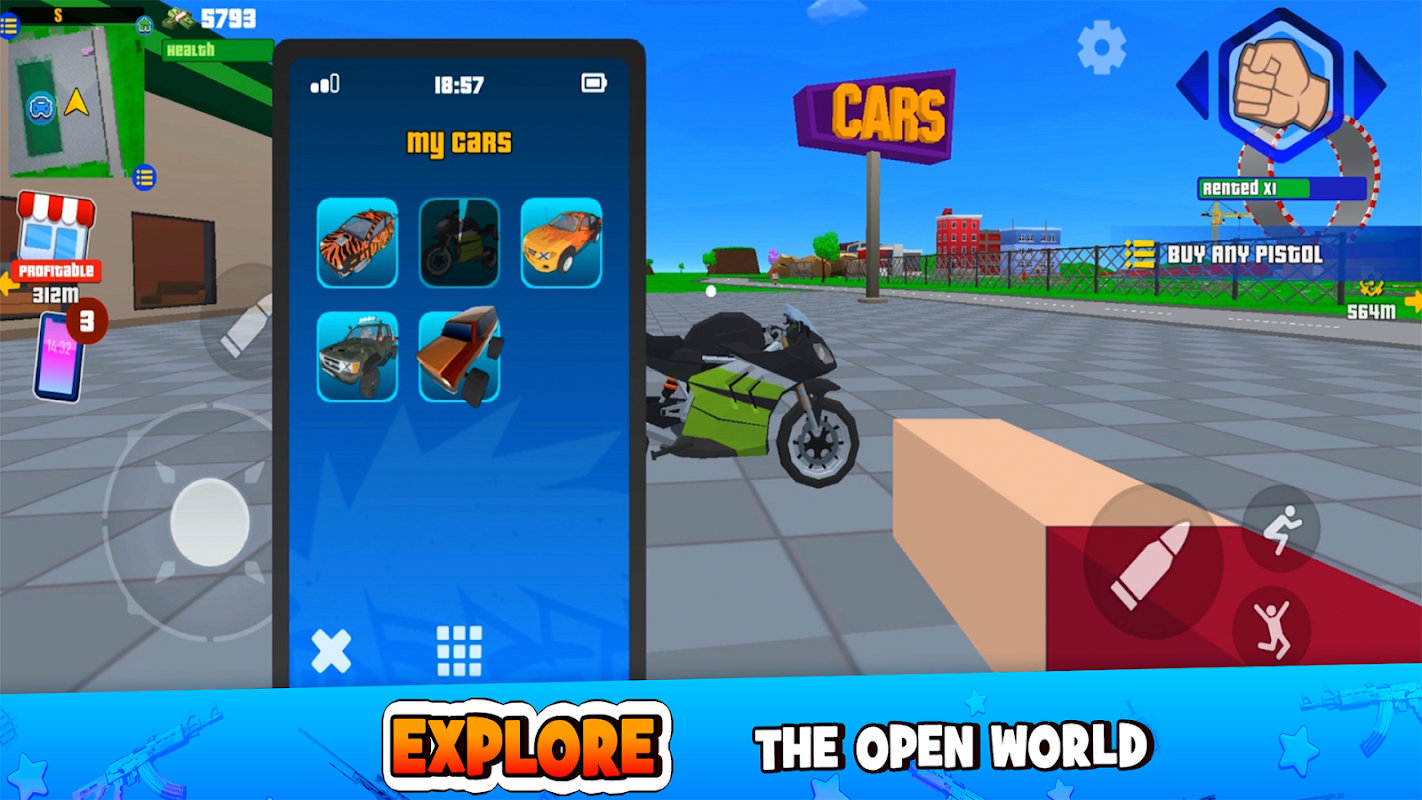 In this open world game, you have the opportunity to drive cars. The city is brimming with funny vehicles for waging block wars and enjoy playing action games. Whether you're cruising on a bike or enjoying a leisurely helicopter ride, there's never a dull moment. Engage in high-speed police chase action games across the expansive map.