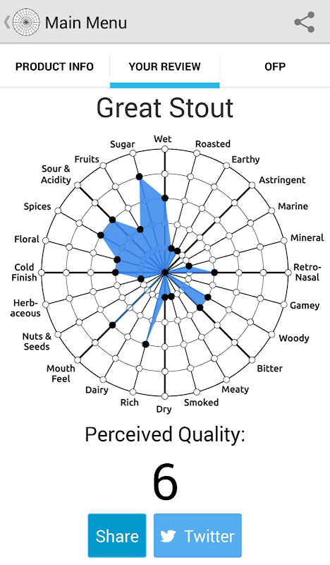 Our mobile app helps everyone visualize, record, and rate the flavor of their favorite artisan products.