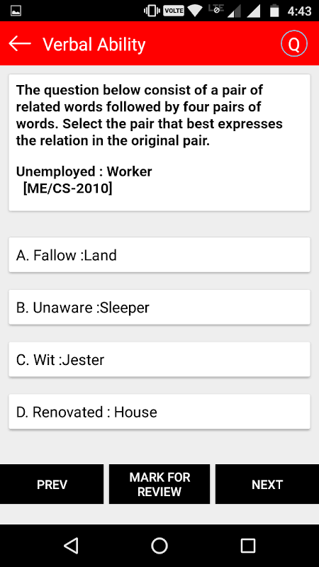 - If you doesn't know the solution of any question,then you can click "MARK FOR REVIEW" option, which is present at bottom exactly in the middle position.