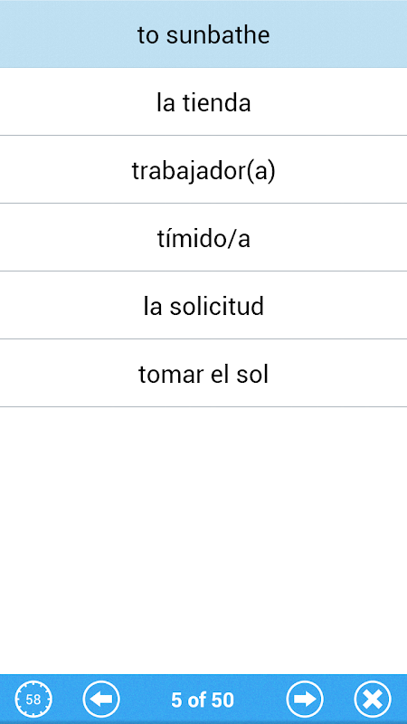 Again, you can either test yourself in Spanish to English or English to Spanish.