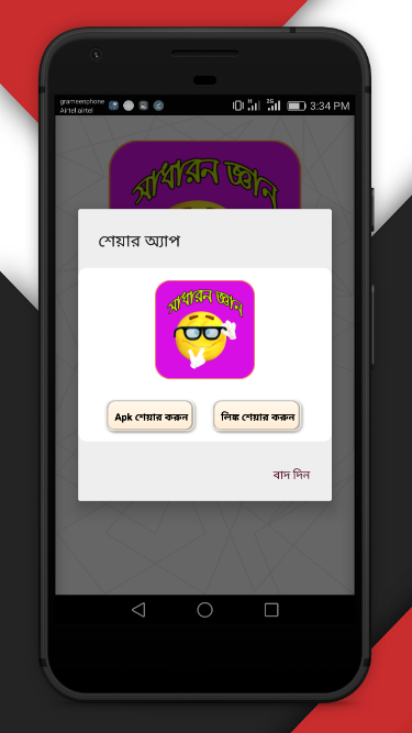 সাধারণ জ্ঞান 2019 / General knowledge 2019 অ্যাপটি যদি আপনাদের ভাল লাগে তবে আমাদেরকে ৫ স্টার দিন আর আপনার বন্ধুদের সাথে শেয়ার করুন । আর কোন ধরণের মতবাদ বাঁ পরামর্শ থাকলে আমাদেরকে ইমেইলের মাধ্যমে জানাতে পারেন ।