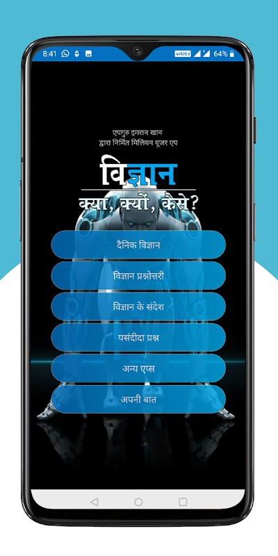 sambungan internet tidak diperlukan sama sekali untuk menggunakan aplikasi ini. Sains Am dalam Hindi mengandungi Daily Life Science Soalan dengan jawapan dalam bahasa Hindi. Ia mengandungi kira-kira 300 soalan terperinci dan 1000 soalan objektif jenis sains Kehidupan Harian .