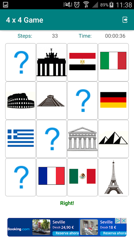 Memotest with countries. Test your memory and concentration. Learn Geography.
