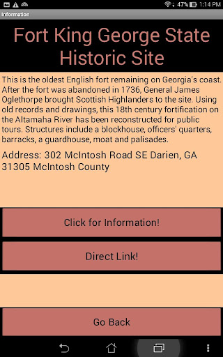 Adakah anda ingin mengetahui lebih lanjut tentang Sejarah Georgia? Nah ini adalah aplikasi untuk anda. Ketahui lebih lanjut tentang apa yang dibina Georgia dan mulakan pengembaraan. Anda akan dapat melihat mercu tanda dan seni bina yang indah apabila anda melawat tapak bersejarah yang membentuk negeri ini. Semak imbas peta Georgia dan kembali ke masa lalu dan baca ringkasan tapak. Terdapat pautan terus ke setiap tapak untuk penerangan yang lebih terperinci bersama-sama dengan maklumat hubungan! Dicipta oleh Pasukan Pelajar CHS: #Gorls'.