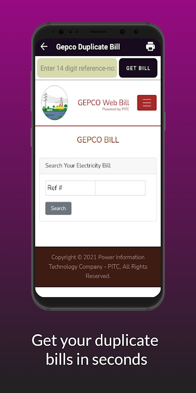 1. BIL GEPCO DALAM TALIAN: Tab ini mengandungi bil pendua Syarikat Bekalan Elektrik Islamabad di bawah Wilayah GEPCO WAPDA.