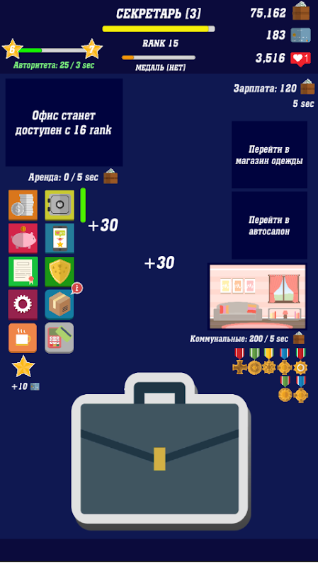 Get to the President - Get the President clicker, clicker, simulator and arcade in one bottle. You will have to go through the entire political hierarchy to become the Supreme Chin-President. The game has the function of obtaining and improving wages, buying characters, renting an office, buying cars and even houses. Invest, spend, get and increase profits. Become a President,