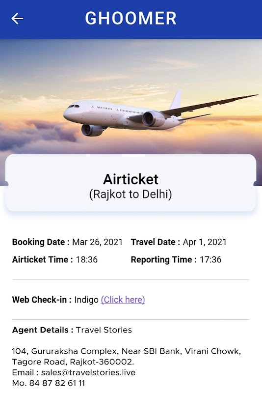 Ghoomer App is a professional travel wallet for travel agents and travelers around the world. With the help of this app Travel Agents can upload Flight, Railway, Bus, Hotel, Packages, Sightseeing, Visa, Insurance, Taxi and other Vouchers and Ticket copies along with their bill.
