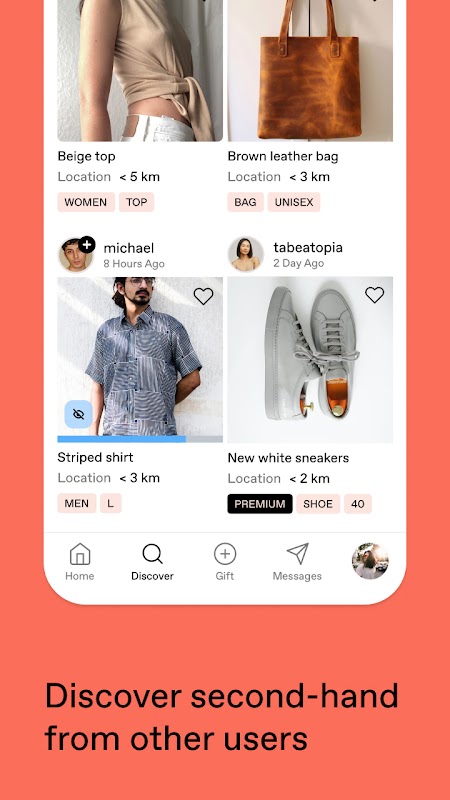 - Semak imbas fesyen terpakai bernilai tinggi daripada pengguna lain di kawasan anda atau merentas komuniti GIFTD.