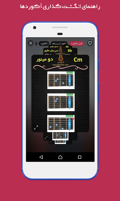 Aplikasi Gitarto termasuk beratus-ratus muzik pop Iran bersama-sama dengan akord untuk digunakan oleh peminat muzik.