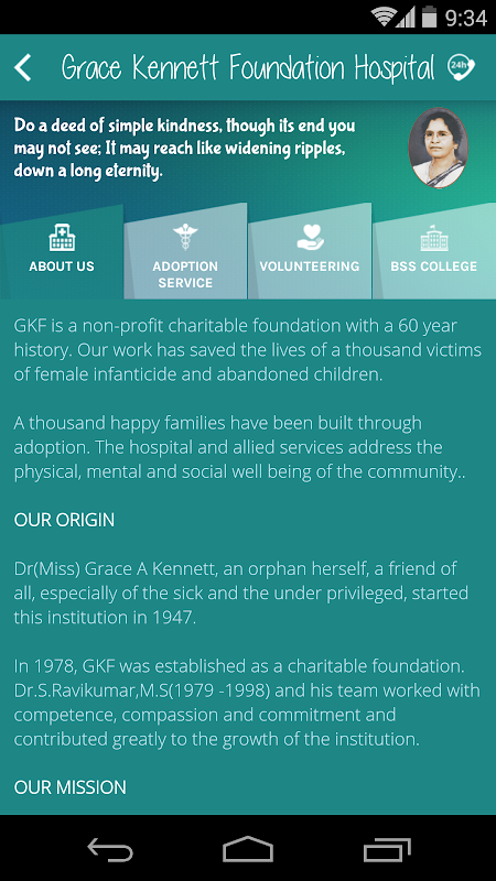 Grace Kennet Foundation (since 1947) in Madurai is a distinguished non-profitable health care institution, which has launched a mobile app for automation and efficiency. GKF mobile app is not just for the hospital but very useful for the patients and productive for the doctors, as we have varied features that explain About the Hospital, Hospital Services, Photo Gallery, Social Media Presence (Facebook and Twitter Feeds), Consultant Timings, Find Us through Geo Location, Camps and Events, Newsletters, Suggestions and Feedbacks.