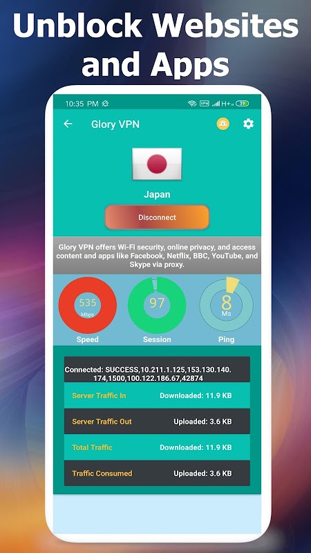 Glory VPN – Free, Unlimited and Fast Proxy Servers Features: