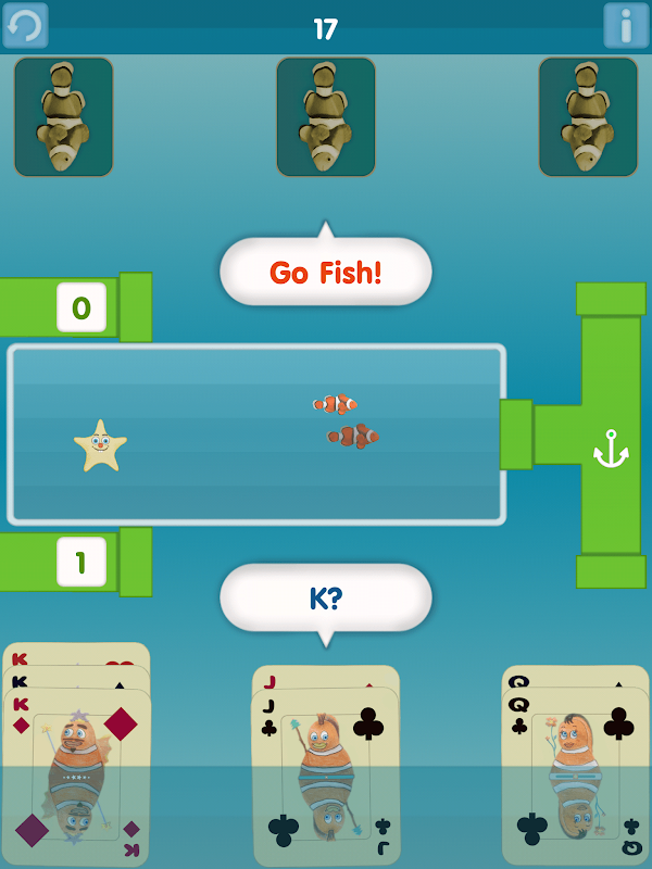 -If she does not have any cards of the requested rank, she says 'Go Fish!' and you draw a card from fish pond