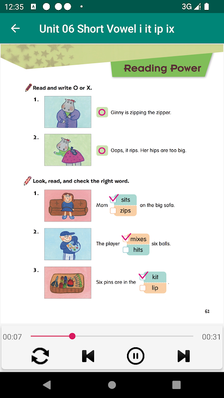 Apl ini disegerakkan dengan buku teks Go Go Phonics 2