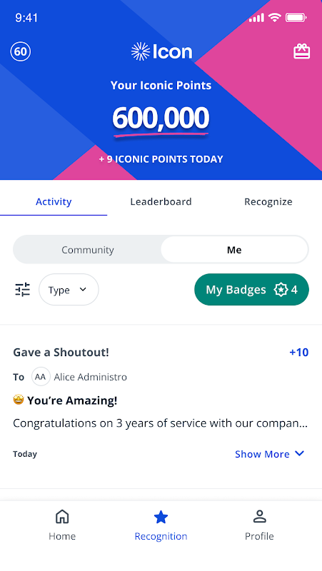 Aplikasi Go Icon baharu membolehkan pelanggan Icon memperkenalkan budaya perayaan dan pengiktirafan. Apl Ikon Go membolehkan pengguna untuk meraikan satu sama lain dengan berkongsi, menerima dan mencapai laungan dan anugerah sorotan untuk persembahan ikonik. Pengguna akan dapat menghantar dan menerima laungan dan pengguna Pentadbir akan dapat menganugerahkan anugerah sorotan khas.