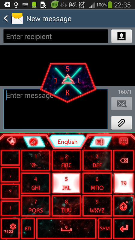 "GO Keyboard Red Glow Theme" is an exciting sparkly theme designed by Inner Works Studios, with a combination of neon effect red and cyan semi transparent buttons that glow on a dark galaxy sky background filled with red and cyan stars. The theme's bright colors have a techno neon laser effect and make your phone vivid and really electric. So if you want your keyboard to glow like a neon customize your smartphone with "GO Keyboard Red Glow Theme" and transform your plain black phone with a cool pop of color! We hope you enjoy our free theme and feel free to check out the rest of our Glow series keyboards!