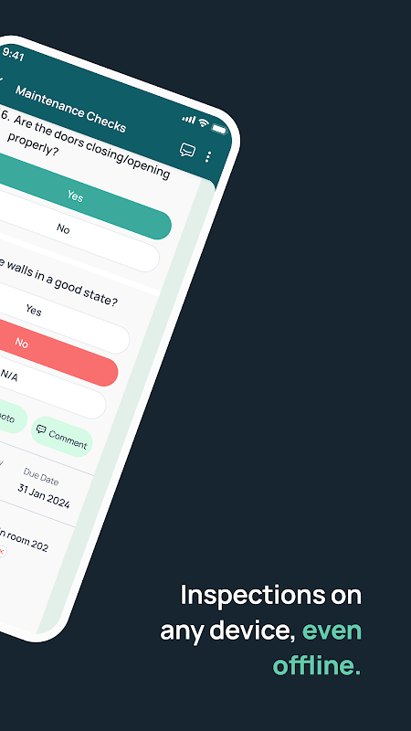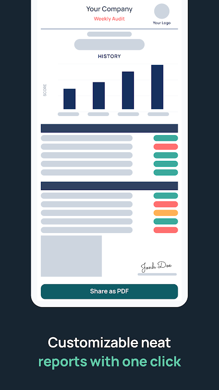 Menjalankan pemeriksaan digital secara terus pada mana-mana telefon, tablet atau komputer. Muat naik dan anotasi foto, tambahkan e-tandatangan, cap masa automatik dan geo-lokasi. Sehingga 5x lebih pantas daripada kertas atau hamparan.