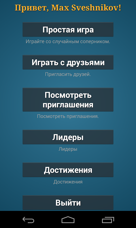 You can play with Android or with your friend in online-mode! Try quick game. If no players available, invite your friend!