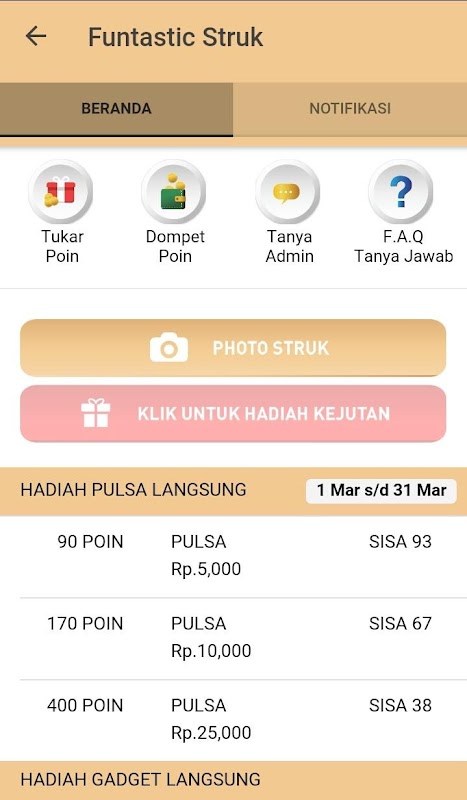 • Anda akan menerima notifikasi penerimaan point dari kami.
