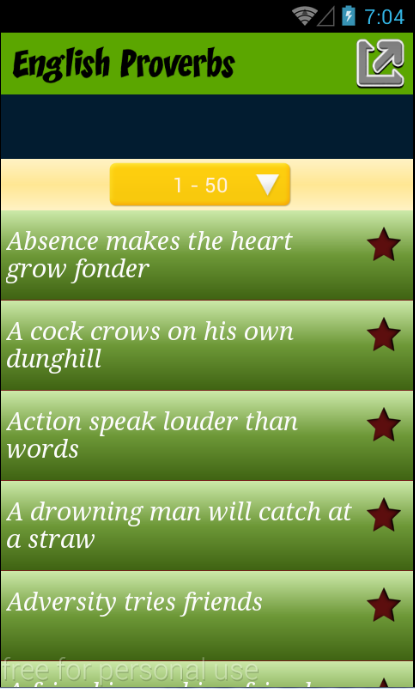 Aplikasi ini mengandungi koleksi peribahasa inspirasi, bijak, dan lucu dan kata-kata dengan makna.