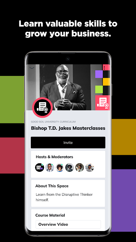 Dengan kerjasama Yayasan Stand Together, perusahaan T.D. Jakes membawakan anda komuniti untuk menyokong pertumbuhan perniagaan anda. Anda akan menemui kursus kendiri, bimbingan, perbincangan harian, sesi Mastermind video, tawaran istimewa daripada pembekal dan pembiaya — dan banyak lagi.