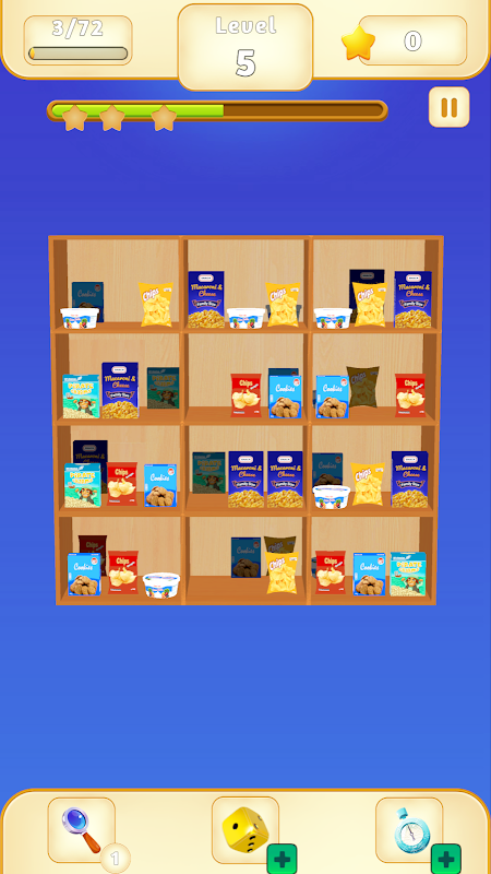 Untuk membantu anda mencapai penguasaan jenis barangan, permainan ini menawarkan tiga ciri hebat. Perlukan sedikit bantuan? Gunakan pilihan pembayang untuk mendapatkan dorongan ke arah yang betul. Menghadapi susunan yang rumit? Kocok makanan untuk mendapatkan permulaan yang baru. kesuntukan masa? Perlahankan masa untuk memberi diri anda detik tambahan untuk menyusun strategi dan memperoleh bintang berharga itu, memastikan anda boleh mengatasi walaupun tahap yang paling sukar.