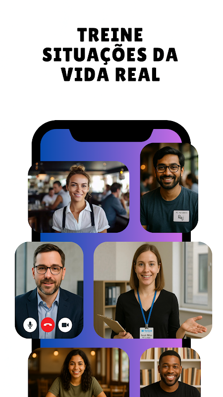 Latih bahasa Inggeris dengan bercakap dengan watak realistik dalam situasi harian (perjalanan, mesyuarat, restoran, temu duga dan banyak lagi).