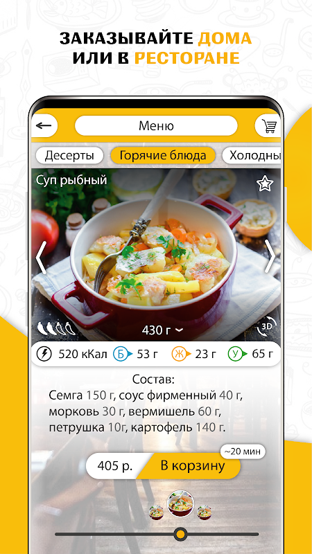 Просматривайте блюда в режиме дополненной реальности, делайте заказ через приложение и отслеживайте его готовность. Не можете определиться с выбором блюда из меню – создайте его сами! Бронируйте столик и управляйте временем готовности заказа. И не забудьте поблагодарить официанта безналичными чаевыми, когда поход в ресторан удался.