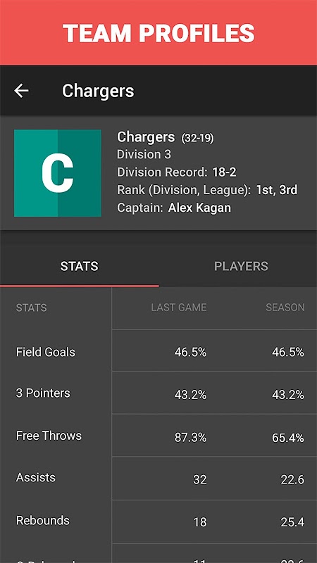 After the game, the stats get their averages computed for the season and can be seen in player profiles and team profiles.