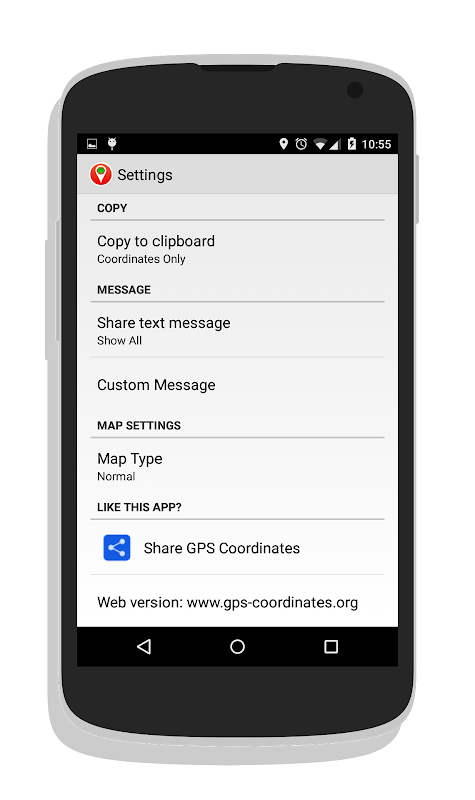Copy dan berkongsi gps semasa anda menyelaras dengan rakan dan keluarga menggunakan lokasi GPS dalam latlong format, alamat atau kedua-duanya. Anda juga boleh menggunakan gps koordinat pencari untuk berkongsi alamat atau gps koordinat yang berbeza.