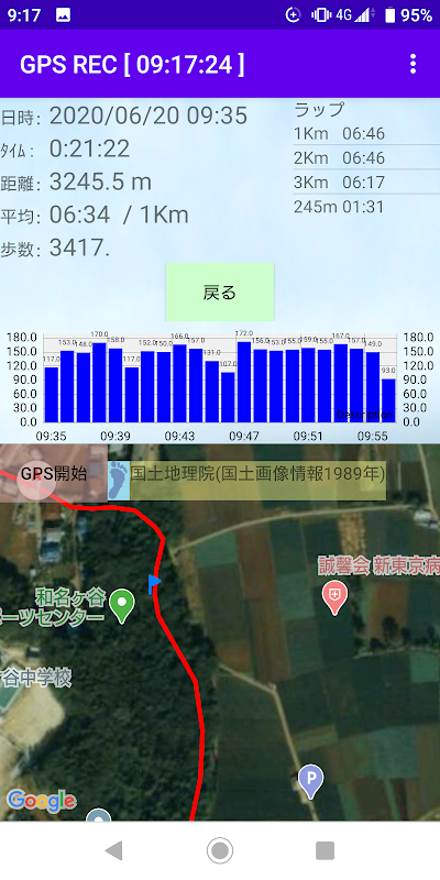 このアプリはスマホのGPS機能を利用して走行ルートや距離・走行時間を記録するものです。