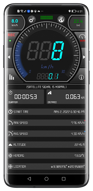 GPS Speed boleh mengesan kelajuan, jarak, masa, lokasi dan juga boleh mendapatkan masa, masa berlalu, kelajuan avg, kelajuan max, ketinggian bermula ...