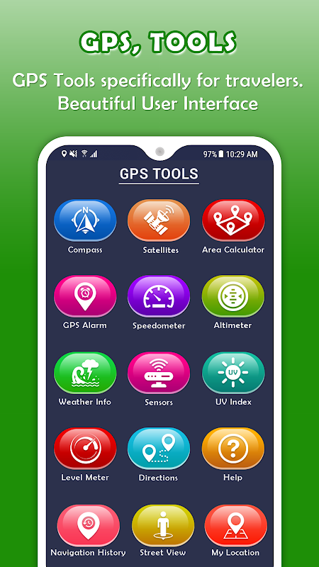 Aplikasi navigasi GPS kami adalah alat multifungsi yang mudah digunakan. Aplikasi GPS padat dioptimumkan khusus untuk mengambil ruang yang kurang pada telefon anda. Berhenti menggunakan selusin aplikasi yang berbeza, kami menggabungkan penggera GPS, Kalkulator Kawasan, Kompas Digital, aplikasi Speedometer GPS Offline, Altimeter, Sensor, Cuaca Luar Talian, Satelit Peta, Sejarah Lokasi GPS, Street View dan sebagainya. Ia hanya dalam satu aplikasi!