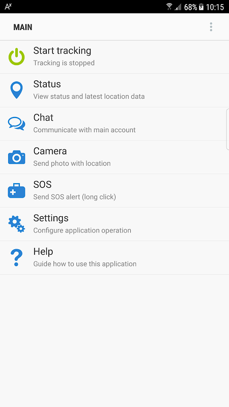 - Kamera membolehkan untuk membuat foto dan memuat naik ke akaun pengguna dengan lokasi terakhir;