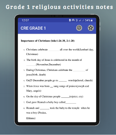 Aplikasi mudah alih GRED 1 CRE {KURIKULUM BERASASKAN KURIKULUM - CBC} membantu pelajar di Gred 1 dalam Semakan Peperiksaan mereka. Aplikasi ini mempunyai kandungan berikut dalam Sukatan Pelajaran: