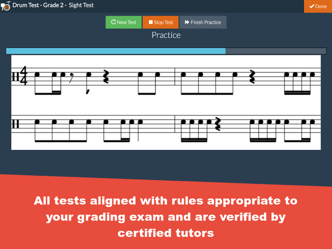 Ujian membaca telinga dan penglihatan adalah aspek menakutkan dalam peperiksaan anda. Tidak seperti persembahan dan latihan teknikal, anda tidak tahu apa yang diharapkan sehingga sukar untuk dipraktikkan, terutamanya tanpa tutor. Dengan menggunakan pengetahuan pakar tutor Drum London Utara yang diperakui, aplikasi ini akan menghasilkan contoh bacaan penglihatan dan ujian telinga yang tidak terhingga, semuanya sesuai dengan peraturan dan kesukaran yang sesuai untuk kelas anda.