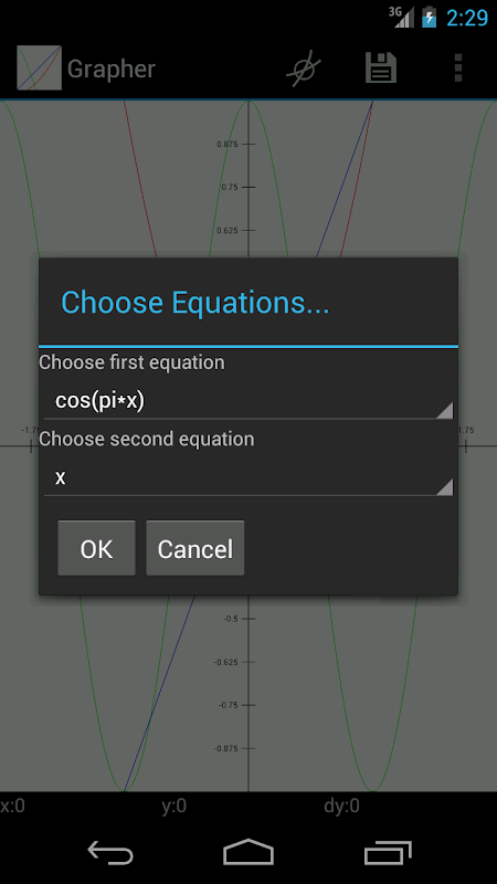 Plot functions and trace their graphs with ease! This is a simple graphing calculator with graphing capabilities similar to TI-83 or TI-89 calculators. To start adding equations, tap the graph! There are no ads, because I hate ads.