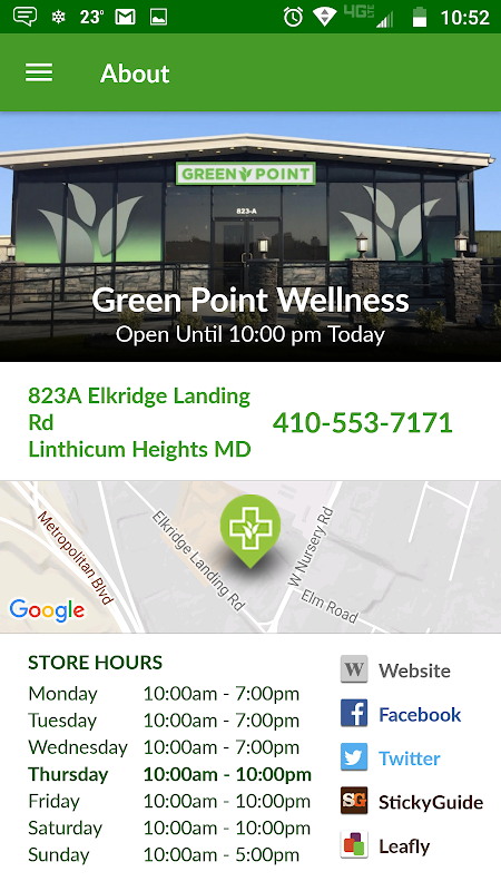 Green Point Kesihatan, yang dispensari Perubatan Ganja di Maryland, gembira untuk menawarkan aplikasi untuk pesakit untuk menerima kemas kini, maklumat, dan melihat menu produk yang disediakan kami kini di kedai! Pemberitahuan tolak akan disediakan untuk mana-mana produk yang kita mempunyai, jadi semak kembali untuk tawaran dan pelarasan harga!