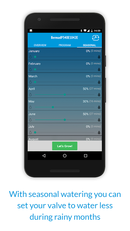 The GreenApp injap pengairan pintar BERMAD dengan pengawal Bluetooth dan aplikasi mesra pengguna untuk menguruskan air taman anda. menyambung GreenApp anda melalui telefon pintar anda untuk memulakan program pengairan disesuaikan dan berkesan anda sendiri untuk menyimpan dengan pelarasan bermusim air.