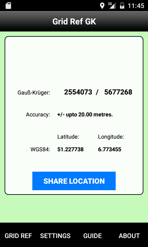 App Menyediakan: GK Grid Ref dan nilai WGS84 Latitud dan Longitud.